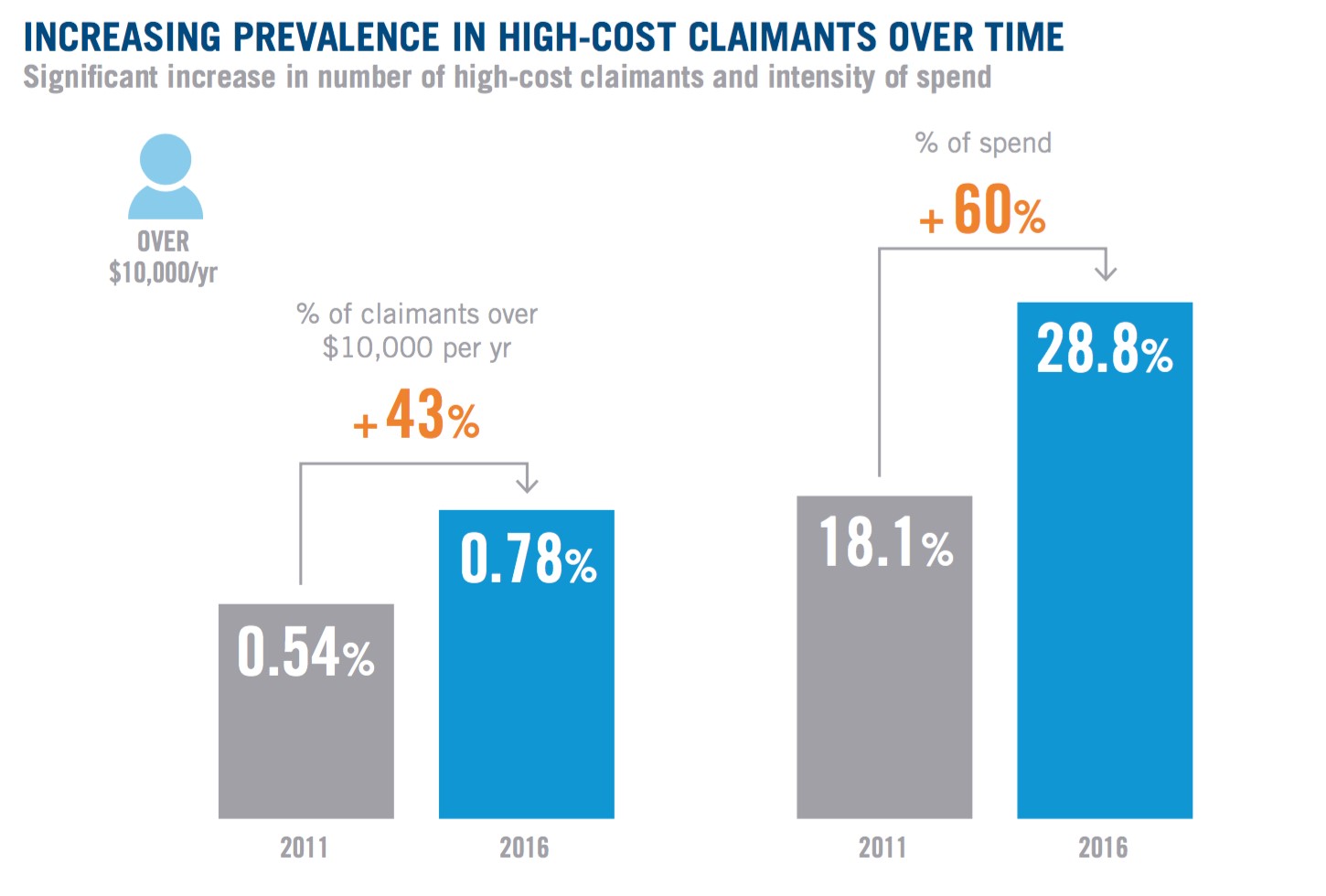 At the same time – and of urgent concern to plan sponsors – the number of working-age individuals with multiple chronic conditions is rising dramatically. These patients require numerous treatments, often prescribed by many doctors and specialists without care coordination.